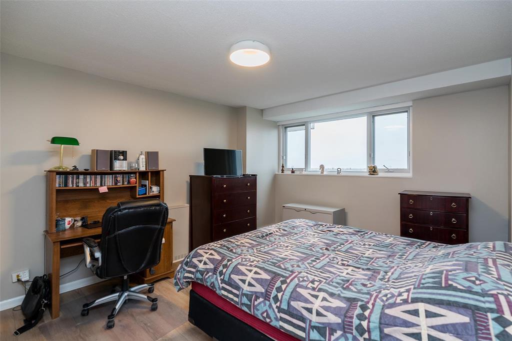 Significant PRICE IMPROVMENT + $3,600 Buyer Rebate! Take advantage of this incredible opportunity at Cambridge Towers- now even better value! This spacious 1,644 sq ft corner condo (one of the biggest in the city!) offers 3 bedrooms, 2 full baths, and 2 balconies -one enclosed for year-round comfort and another open-air retreat off the primary suite, perfect for enjoying beautiful evening sunsets. Inside, you ll find brand new luxury vinyl plank flooring, updated lighting throughout, fresh neutral paint, and new stainless steel appliances -all creating a warm, modern, move-in-ready home. The open living and dining area is bathed in natural light with sweeping city views, ideal for both relaxing and entertaining. The king-sized primary bedroom includes a walk-in closet, ensuite bath, and private balcony. Two additional bedrooms offer flexibility for guests, work, or hobbies. Enjoy UNDERGROUND PARKING, in-suite storage, and a seasonal outdoor pool in a concrete, PET FRIENDLY building. Located across from Grant Park Shopping Centre, near the Pan Am Pool, library, gyms, and transit. Act now-price reduced and includes a $3,600 rebate you can use toward condo fees, holiday shopping, or a winter vacation!