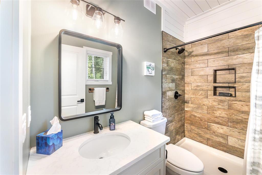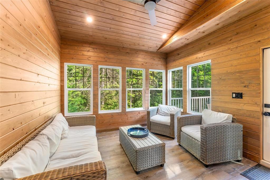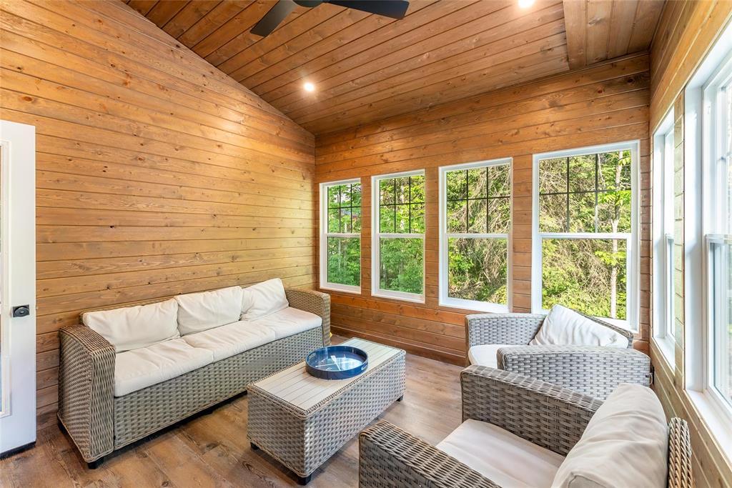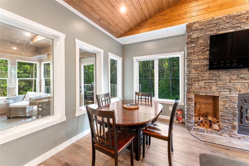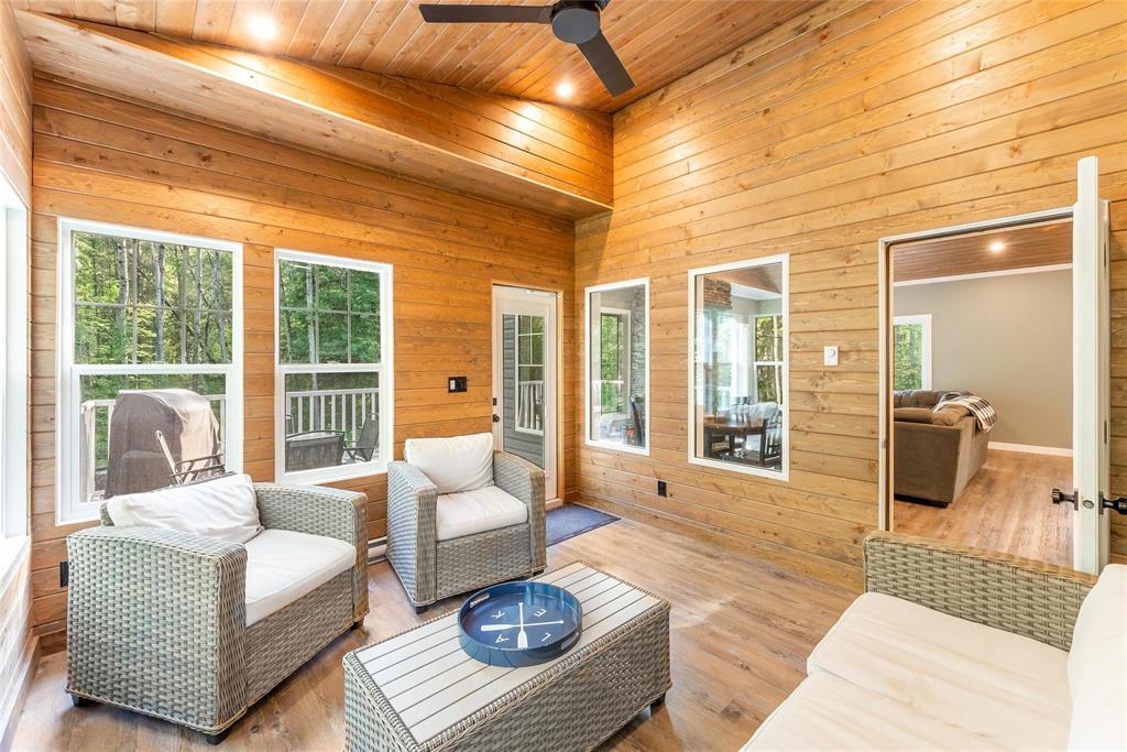 SS 04/07/26. Welcome to the much sought-after neighborhood of Granite Hills. This beautiful 1200sft 4-season Home/Cottage is located on over a 1/2-Acre, nicely treed, private lot with 3 Bedrooms, 2 Bathrooms, an Open-Concept LR/DR/Kitchen, along with all of the conveniences and amenities of home. Walk in to the large front entryway and immediately feel relaxed in this year-round retreat. Chill out in the combined Living-room & Dining-room that offers a modern, yet rustic design and vaulted ceilings. Cozy up to the wood-burning fireplace and enjoy a movie. The contemporary Eat-In Kitchen boasts quartz countertops, plenty of cabinetry, a built-in wine-rack and 4 SS appliances. Sit out in the 3-season Sunroom surrounded by views of nature without the bugs, or head out the garden door and have a BBQ out on the composite back deck. Gather around the outdoor fire-pit area in your very own park-like setting. The spacious Primary Bedroom has a 3-pc Ensuite w/sleek walk-in shower. 2 more good-sized Bedrooms down the hall, along with 4-pc Bath & Laundry/Storage room. Walking distance to Marina, Boat launch, Golf course, General Store, Restaurant, Gas Station and beach area. Dock slips available. Co-Op water.