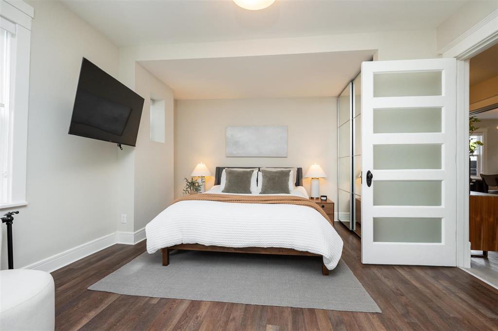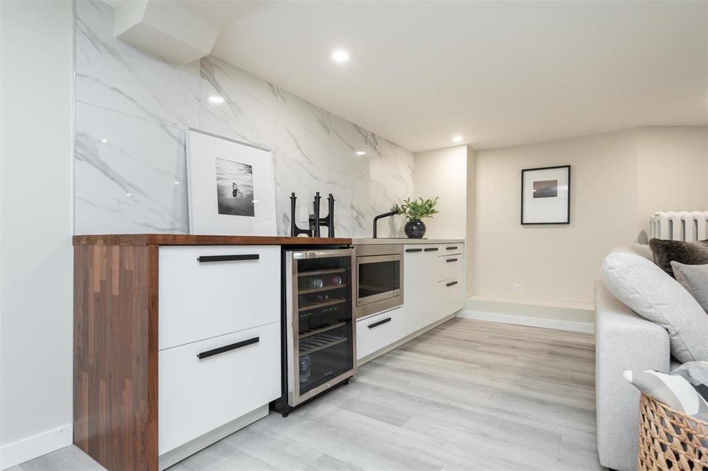 SS now, Offers as received. Set in the heart of coveted Crescentwood, this exceptional main floor condooffers over 1,600 sqft of beautifully blended heritage and modern style. Featuring 3 bedrooms, 3 fullbathrooms, a finished basement, and parking for two, this home delivers both substance and style. Rich inoriginal detail bevelled glass built-ins, decorative fireplace, pocket doors, and oak trim this timelessresidence is elevated by a stunning newly renovated eat-in kitchen designed for both beauty andfunctionality. The formal dining room and sunlit living area exude warmth and sophistication with originalmillwork and elegant wainscoting throughout. The primary suite boasts a luxurious en-suite with a customtiled walk-in shower and glass wall. The lower level impresses with a bright, open-concept layout, a full wetbar, full bath, laundry, and a private entrance perfect for guests or multi-generational living. Topped off bya show-stopping 10' x 35' front deck and impeccable condition throughout, this is an unparalleledopportunity steps from the vibrant Corydon strip.