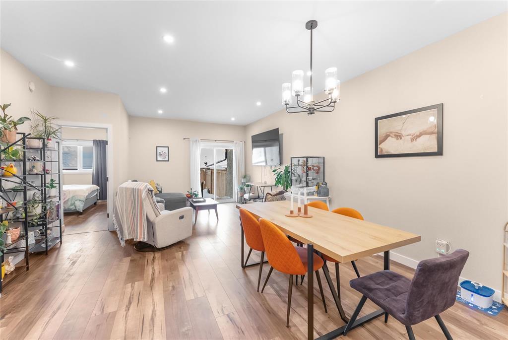 Welcome to this charming, pet-friendly condo ideally located in the heart of Niverville. Offering low condo fees and a truly low-maintenance lifestyle, this home features 1,055 sq. ft. of thoughtfully designed living space with 3 bedrooms, 2.5 bathrooms + single attached garage. Loaded with upgrades, you ll appreciate the 9-foot ceilings on the main level, vinyl plank flooring throughout, and quartz countertops in the kitchen + bathrooms. The bright, timeless white kitchen boasts ample cabinetry, counter space, a large island + open-concept living and dining area. Patio doors lead to a private deck + fenced backyard perfect for relaxing or entertaining. The primary bedroom offers a peaceful retreat with a large window overlooking prairie views, a walk-in closet plus spacious 4-piece ensuite with double sinks. Also on the main floor is a second bedroom, a convenient half bath, and a laundry area. The fully finished lower level adds even more versatility, with a bedroom, 4-piece bathroom, spacious recreation room, a bonus den, and plenty of storage. Enjoy the surrounding amenities including a nearby lake, playground, park, and sheltered seating area. Call to book a showing today !!!