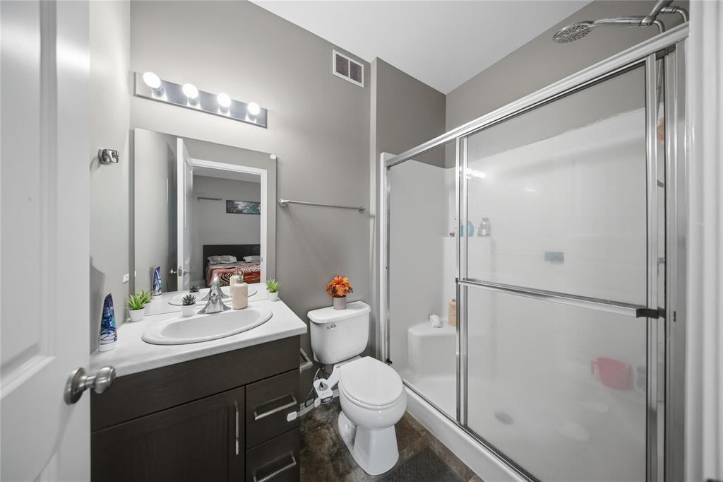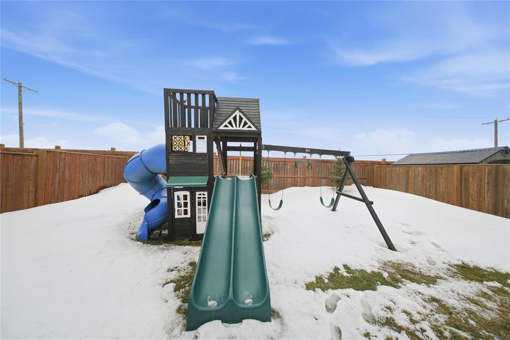 Showings start now. Offers as received. Welcome to this well-maintained former show home, a 1,330 sq. ft. bungalow in the highly sought-after Castlebury Meadows, just steps from the lake, walking paths, playgrounds and Ecole Waterford Springs School. The home features an open-concept main floor with modern laminate flooring, three spacious bedrooms, and a primary suite with walk-in closet and ensuite bath with standing shower. Built with steel beam construction, the open-span basement offers versatile spaces currently arranged as two additional rooms with large windows, ideal for recreation, home office, or guests. Additional highlights include a chef-inspired eat-in kitchen with island and walk-in pantry, 9-foot ceilings, central air, high-efficiency HVAC, stone accents, and a wooden sectional overhead garage door. Outside, enjoy a fully fenced yard with a 14 x 13 deck and play structure. Conveniently located within minutes of Shopping Centres, parks, grocery stores, public transit, Hospital and no rear neighbours with added privacy, this home combines style, quality, and a family-friendly location.Don t miss this rare and highly sought-after opportunity to own a pride-maintained former show home.
