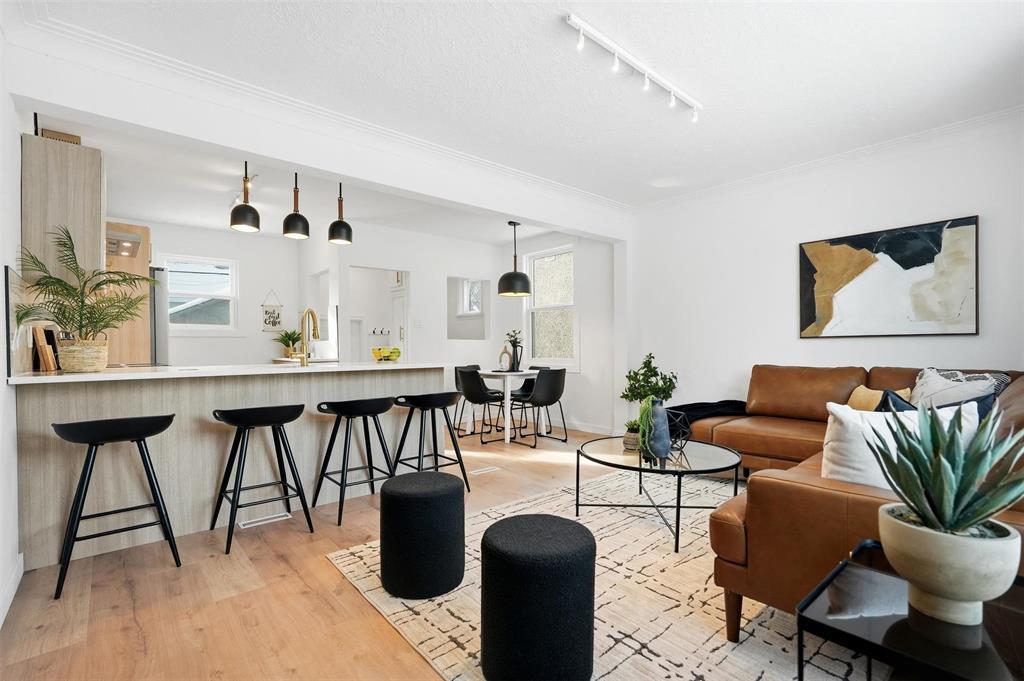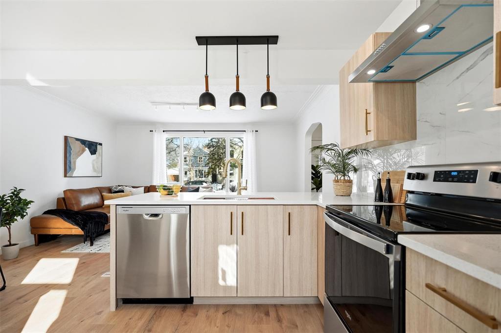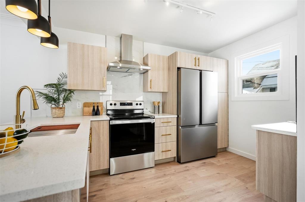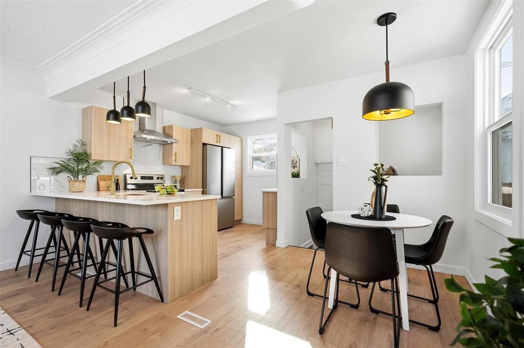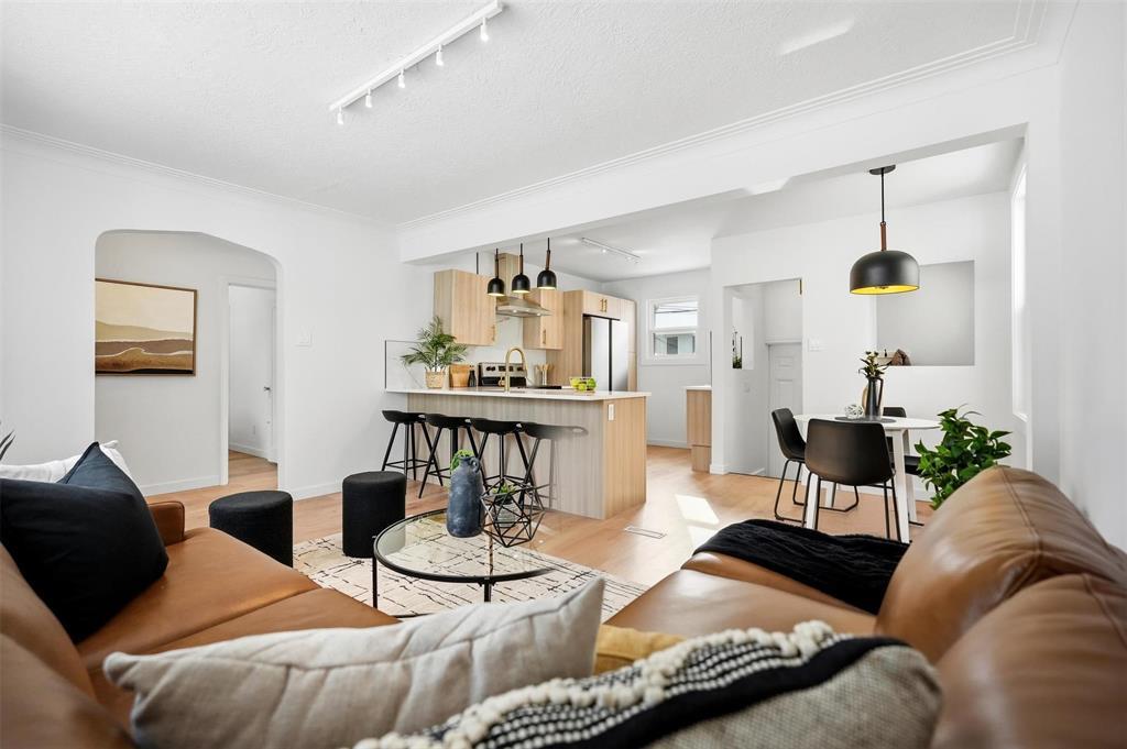 SS NOW! OTP 3/24/26 at 6pm. An incredible chance to own a fully renovated home in the heart of Crescentwood! Close to schools, Harrow Park, iconic Corydon shops, and so many amenities, this 3 bed, 2 bath bungalow impresses from the moment you walk in. The tree-lined street gives a warm, family-friendly vibe, and as you step inside, you instantly feel at home. Oak laminate flooring flows from the two bright main-floor bedrooms into the open living, dining, and kitchen space. A stylish 4-piece bathroom with Calcutta tile tub surround is also on the main floor. The kitchen combines style and warmth with wood-look cabinetry, cream quartz countertops, and gold hardware. Downstairs features a 3rd bedroom (window may not meet egress), a comfortable rec space with a chic wet bar perfect for entertaining a second full bathroom, and the utility/laundry room. The fully fenced yard is ideal for BBQs, kids, and pets! The oversized single detached garage provides plenty of parking and storage, including a workshop area off the man door. Move in, unpack, and start enjoying all that Crescentwood living has to offer. Book your showing today!